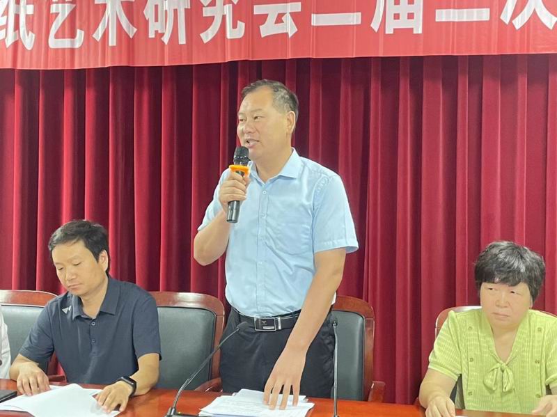 会议伊始,王飞会长对过去一段时间研究会的工作进行了全面总结。在过去的工作中,研究会积极开展各类活动,常年举办公益性剪纸艺术学习班,为剪纸爱好者提供了学习和交流的平台,让更多人了解和喜爱上剪纸艺术。
