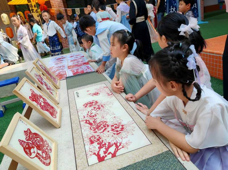 步入定 鼎门社区剪纸课堂,浓郁的文化气息扑面而来。洛阳市剪纸艺术研究会的老师们正在现场授课,教室四周悬挂的剪纸作品琳琅满目,引得刘宁一行驻足观赏。